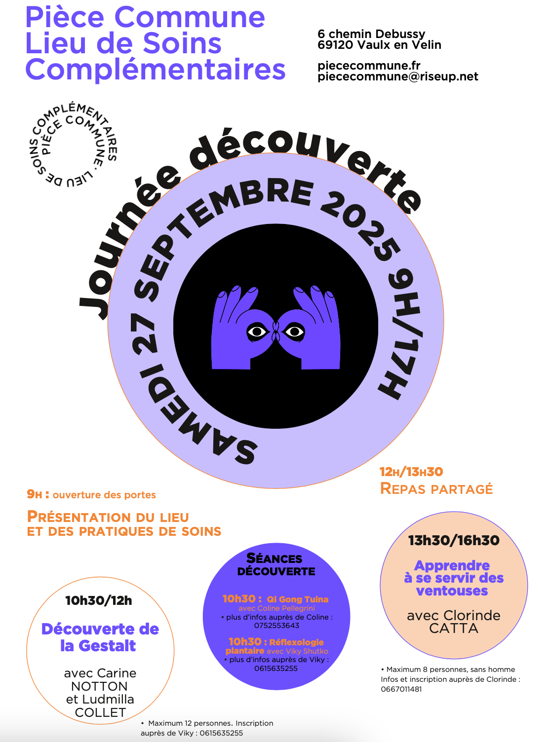 Samedi 27 Novembre, Pièce Commune ouvre les portes de son lieu de soins complémentaires pour une journée découverte. Ludmilla COLLET et Carine NOTTON y animeront un atelier de découverte de la gestalt thérapie.